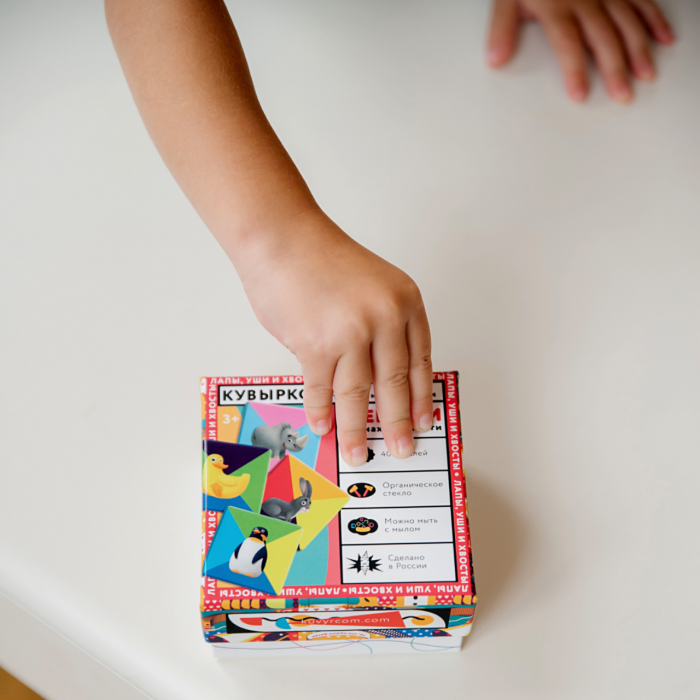 Квадратики плотные и твердые, маленькому ребенку их удобно держать в руках и переворачивать. Зверушки — яркие, четкие, легко распознаются на усложненном разноцветном фоне.