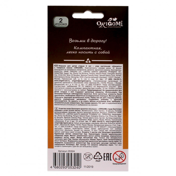 Настольная игра ORIGAMI Шахматы (магнитная) 5324
