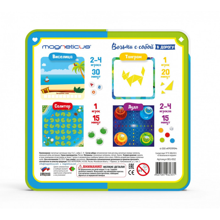 Магнитная игра MAGNETICUS 4-в-1 (виселица, лудо, солитер, танграм) BG-002