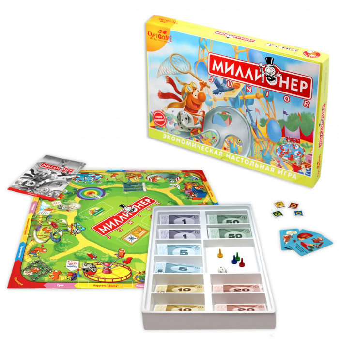 Миллионер Junior. Начинаем карьеру с детства – с новым "Миллионером" для детей! Малыш пройдет непростой путь от менеджера до генерального директора, узнает много нового об экономике и бизнесе и все - в красочном и ярком оформлении. Классическая экономическая игра, корни которой уходят в 30-е годы 20-ого века. Цель игры: покупая недвижимость и предприятия, разорить соперников.Игра развивает логическое мышление,обучает основам экономики, повышает общий интеллектуальный уровень