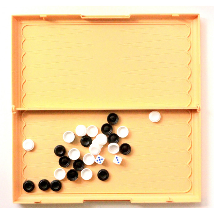 Набор состоит из двухстороннего игрового поля: одна сторона поля предназначена для игры в шахматы и шашки, вторая - для игры в нарды. Края у игрового поля скруглены, и оно легко складывается пополам.