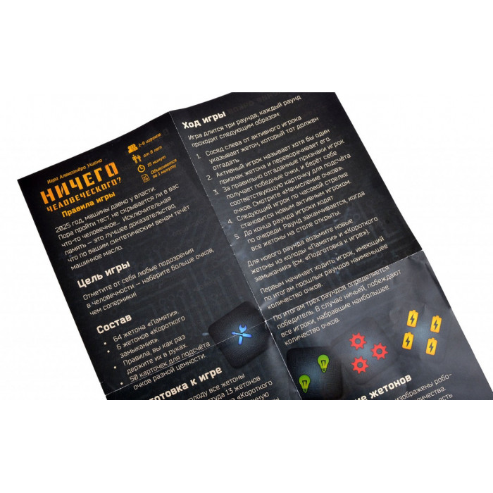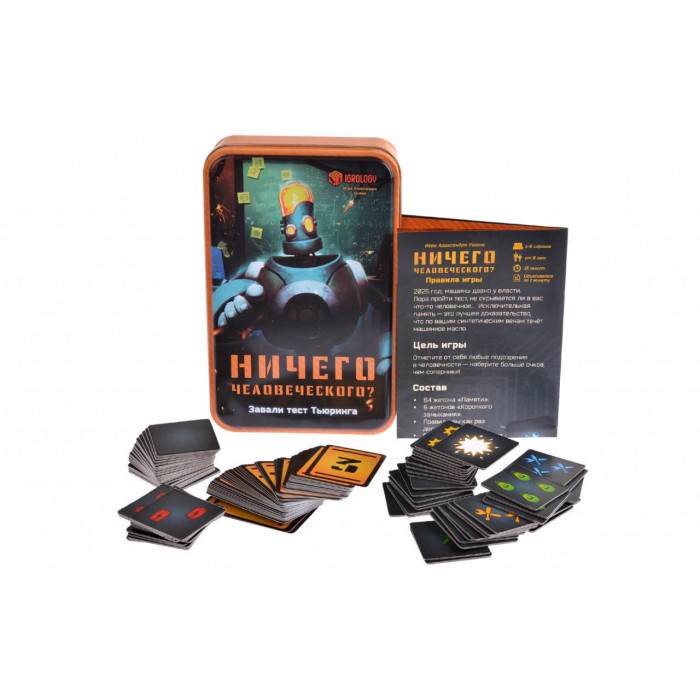"Ничего человеческого?" — это быстрая и веселая игра на развитие памяти. Инновационные правила выводят знакомые с детства "игры на память" на другой уровень, позволяя игрокам взвешивать свой риск и активно взаимодействовать с друг другом.