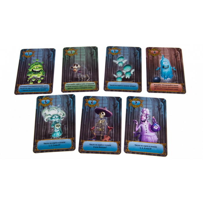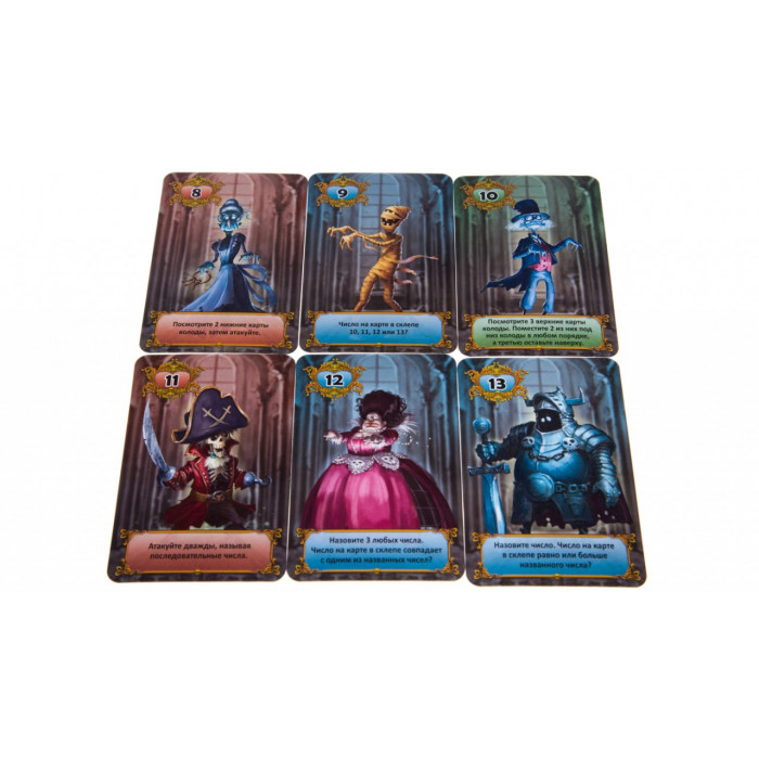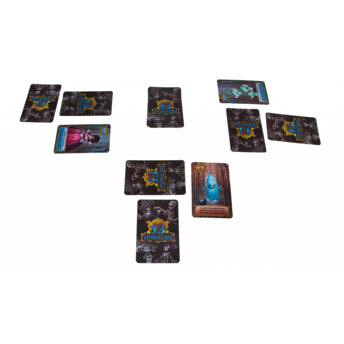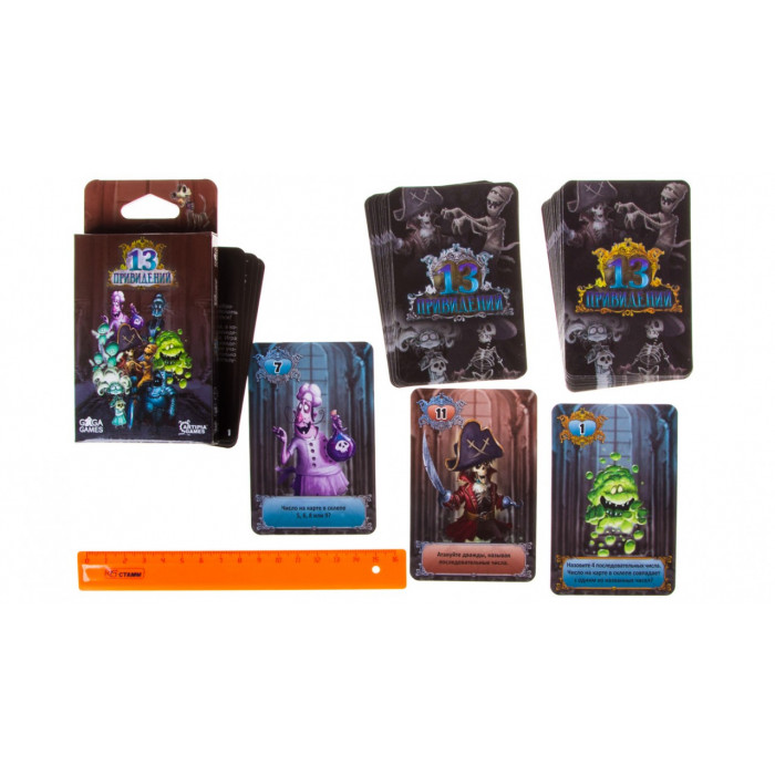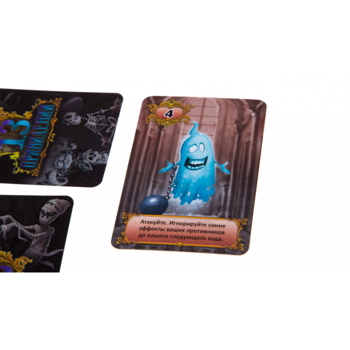 13 привидений — это небольшая игра, в которой 2–4 игрока пытаются найти привидение, прячущееся в склепе противника. Игра состоит из двух наборов по 13 карт привидений (с цифрами от 1 до 13). Если в игре участвуют 2 или 3 игрока, используйте только один набор карт. Оба набора карт используются только при игре вчетвером.