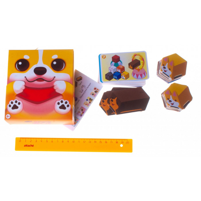 В ушастой и милой коробке скрываются 28 активных кубических песиков и 52 двухсторонние карточки с заданиями. А это более 100 увлекательных головоломок и совсем безграничное удовольствие.
