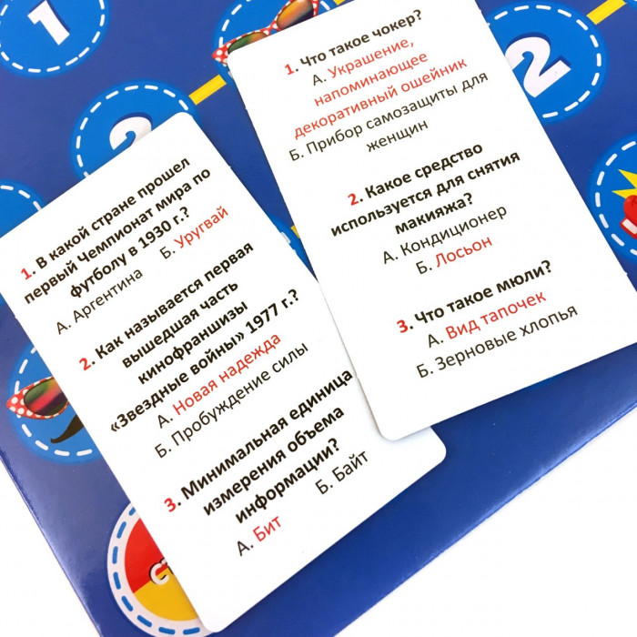 - 27 зеленых и 27 желтых карт с тремя вопросами на каждой