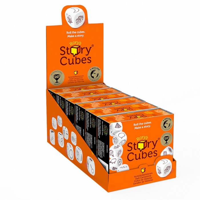Большие приключения скрываются за маленьких словом "однажды". Именно с этого слова начинается каждая партия в игру Rory’s Story Cubes. А что же будет дальше, вы фантазируете сами. Игра — это нечто удивительное. Посмотрите на эту маленькую яркую коробочку. Казалось бы в ней всего лишь 9 кубиков. Тем не менее в таком маленьком пространстве умещается бесконечность человеческого воображения. Неважно, хороший вы рассказчик или же школьные сочинения до сих пор преследуют вас в ночных кошмарах, кубики помогут вам создавать захватывающие истории — смешные, грустные, фантастические, серьезные или дурашливые. Как играть: Итак, в наборе девять шестигранников, на стороны которых нанесены 54 неповторяющиеся картинки. Тут вы найдете все, что угодно: овцы, стрелы, инопланетяне, яблоки, звезды и еще много странных несвязанных между собой вещей. Вот вам-то и придется их между собой связать. Берите все кубики в руку, хорошенько трясите и бросайте. Картинки, которые выпали должны составлять сюжет вашей истории. Разделите шестигранники на три группы (по три кубика в каждой) и начинайте фантазировать. Первые три кубика — это начало истории, следующие — продолжение, а последняя тройка — концовка. Вы изрядно повеселите друзей, пытаясь придумать историю про рыбу, волшебную палочку и банк. Или про инопланетянина с фонариком под мостом. Игра прекрасно развивает воображение и навыки коммуникации. Научившись сочинять рассказы с самыми нестандартными сюжетами, вы никогда больше не столкнетесь с тем, что вам нечего сказать. Изобрёл эту необычную игру ирландец Рори О’Коннор. По задумке автора кубики должны были служить пособием для развития творческих способностей. Так оно и вышло, только в добавок они стали популярнейшей во всем мире настольной игрой.