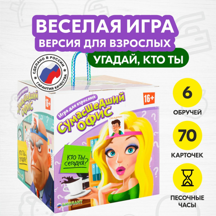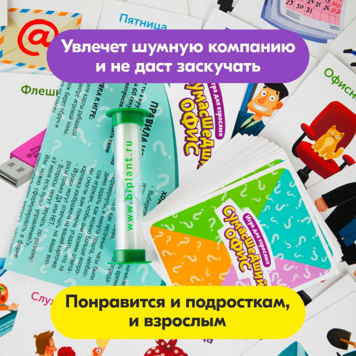 Продолжение популярной игры "Друг-Утюг". Тема взрослой версии игры - кадры и артефакты современной офисной жизни, а также все, что с ней связано! МОРЕ ПОЗИТИВА В ПОДАРОК! Цель игры: за 60 секунд задать как можно больше вопросов и угадать свою роль, в то время как другие уже знают!