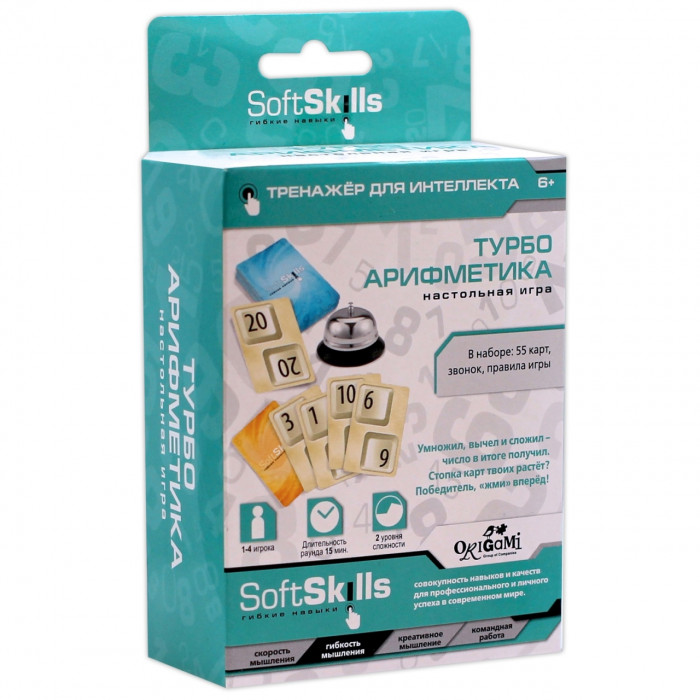 Используя 4 карты на руках, игроки на скорость должны получить это число методом сложения, вычитания, умножения и деления. Получилось? Жмите на звонок и покажите этапы вычисления игрокам.