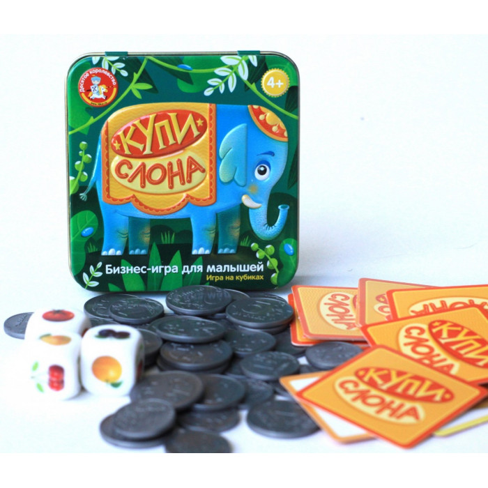 Настольная игра в жестяной коробке "Купи слона" обучает навыкам устного счета, тренирует память, внимание и сообразительность.
