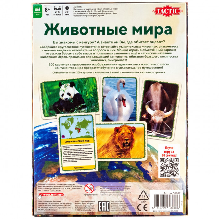 Настольная игра TACTIC Животные мира 58087