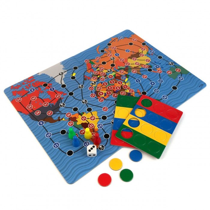 Игровое поле представляет собой карту мира, на которой разбросаны много ходов, которые связаны между собой. Каждому ходу соответствует определенное животное, которое обитает в этой точке мира.
