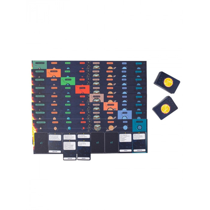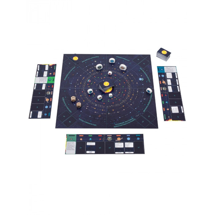 Перед вами огромная карта космического пространства. Играйте за одну из планет Солнечной системы, кидайте кубики и перемещайтесь по орбите, сопоставляйте факты о разных планетах, принимайте участие в космических атаках и базарах. Но самое главное - следите за фишками других игроков, чтобы не пропустить парад планет!