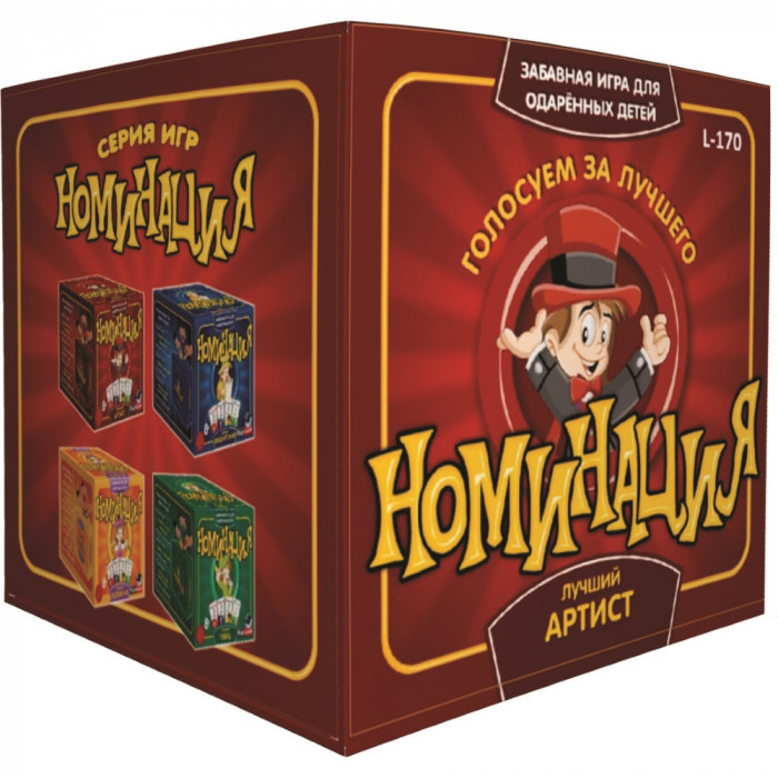 Номинация "Лучший артист" — игра для детей старше 8 лет и взрослых. В игре могут участвовать от 3 до 4 игроков. Желательно, чтобы было 4 игрока, поскольку в этом случае игра протекает интересней.