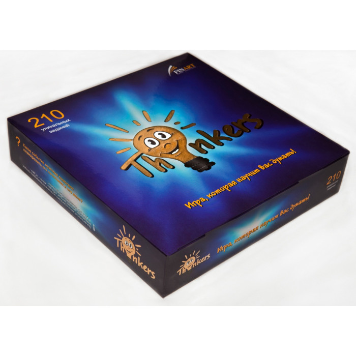 В отличие от прочих настольных игр Thinkers направлена не на развлечение участников, а на стимулирование их умственной деятельности. Хотя, надо сказать, играть в Thinkers безумно интересно и увлекательно. Для победы в интеллектуальном состязании потребуются гибкость мышления и нестандартный подход, а вовсе не энциклопедические знания.