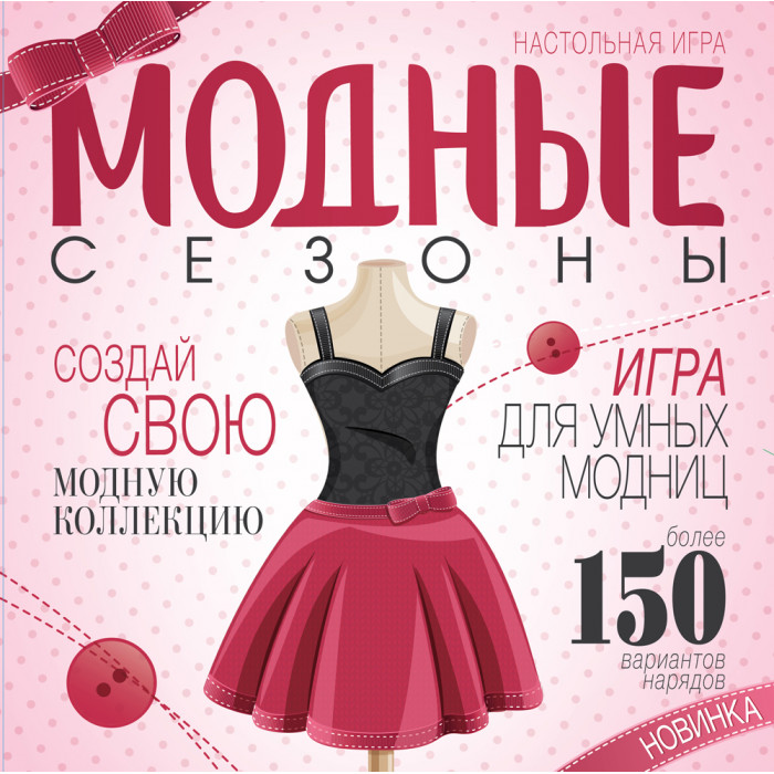 "Модные сезоны" - настольная игра для тех, кто в душе великий кутюрье. В ходе игры участники будут придумывать наиболее вигрышные комбинации одежды и бороться за титул самого успешного дизайнера. Как играть? В течение каждого сезона игрок собирает по коллекции модных образов. Чтобы коллекция получилась удачной, необходио следовать определенным правилам. От того, насколько успешной и интересной она получилась, зависит количество победных очков. Всего в игре 4 сезона, в каждом из которых 7 раундов. Создайте самые лучшие наряды и докажите всем, что у вас самый лучший вкус! В набор входят настоящие пуговицы, котрые можно использовать для подсчета очков - а можно проявить творческие способности на практике и украсить ими наряд. Что в наборе? 110 карт одежды; 15 карт событий; 30 пластиковых пуговиц очков; фишка учета сезонов; фишка подсчета круга; таблица начисления очков; правила игры.