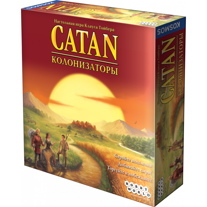 Желанию осваивать новые земли всегда сопутствует отвага – этих двух элементов у колонизаторов огромного острова Катан в избытке. На новых просторах они будут добывать сырье, прокладывать дороги и возводить целые города, а также торговать и даже бороться с разбойниками. Вопрос в том, кто из поселенцев смогут создать самое могущественное государство? "Колонизаторы" на протяжении многих лет сохраняют звание одной из самых популярных настольных игр в мире. За двадцать лет игра обзавелась множеством расширений и дополнений. Остров Катан и его окрестности стали настоящим захватывающим миром, где постоянно происходит что-нибудь интересное. Состав игры: 19 гексов ландшафта 6 элементов морской рамки 97 пластиковых фигурок 18 номерных жетонов 95 карт сырья 25 карт развития 4 карты цены строительства 2 особые карты Альманах колонизатора 2 кубика правила игры