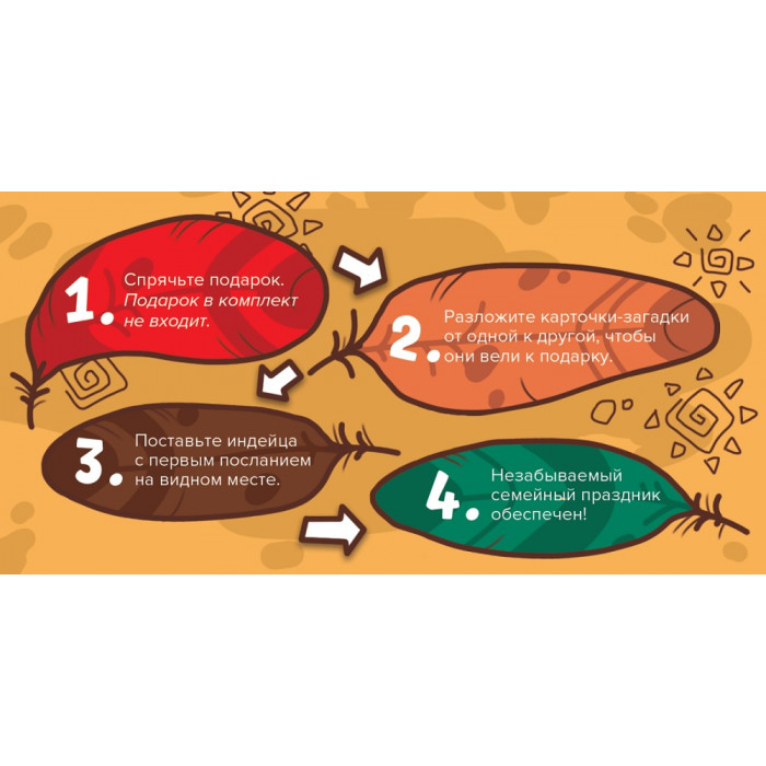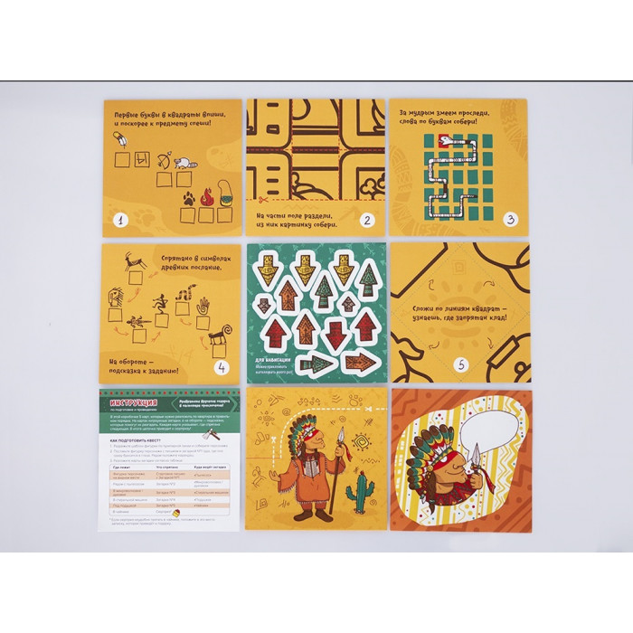 Чтобы прочитать подсказку, сначала придется разгадать головоломку, с помощью которой зашифровано место, куда ведёт карточка. В наборе 5 карточек с подсказками, каждая указывает путь к следующей:
