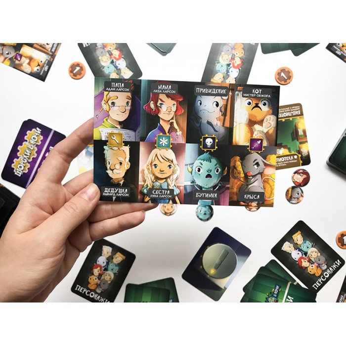 - 8 карт "Персонажи" и 8 фишек персонажей