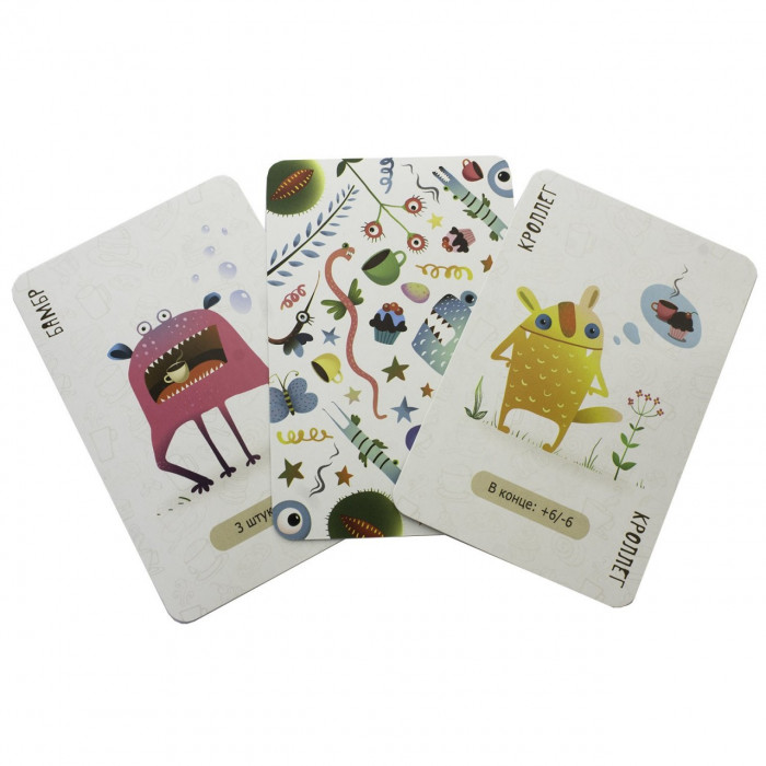 "Кафе для чудищ" - игра для взрослых и детей с простыми и понятными правилами. Задача - подружиться с чудищами, выбирая относительно симпатичных и комбинируя их так, чтобы получить максимум очков.