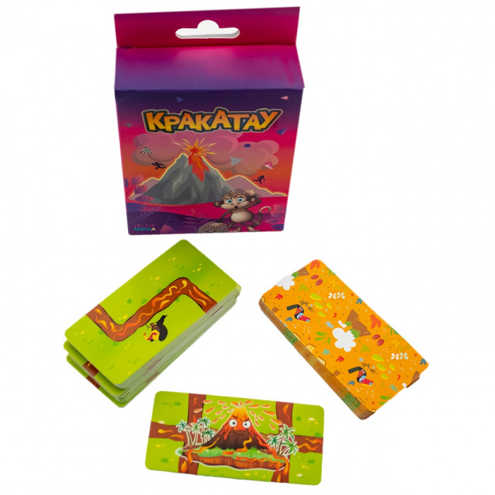 "Кракатау" - это веселая и быстрая карточная игра для взрослых и детей. Началось извержение Кракатау, и раскаленная лава течет, уничтожая все на своем пути. Вместе со своими друзьями попытайтесь остановить потоки лавы. Если вам это удалось - вы победили!