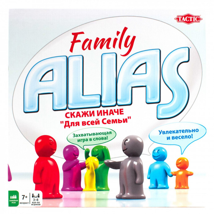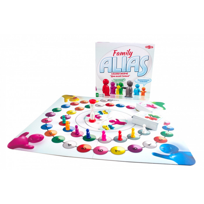 С двумя типами карточек, в Family Alias будет интересно играть как детям, так и взрослым. За каждое правильно угаданное слово оба партнера получают возможность двигаться вперед по игровому полю. Первый игрок, который достигнет площади победы — выиграл!