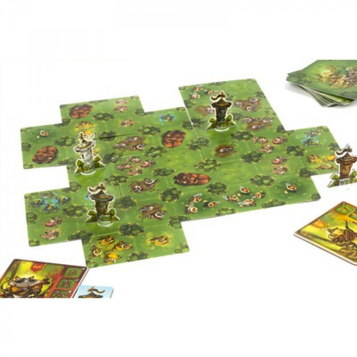 - Каждый игрок тайно становится во главе одного из 5 лесных кланов. В ходе игры участники будут выкладывать карточки леса, одновременно расширяя его границы и заполняя территорию различными животными.