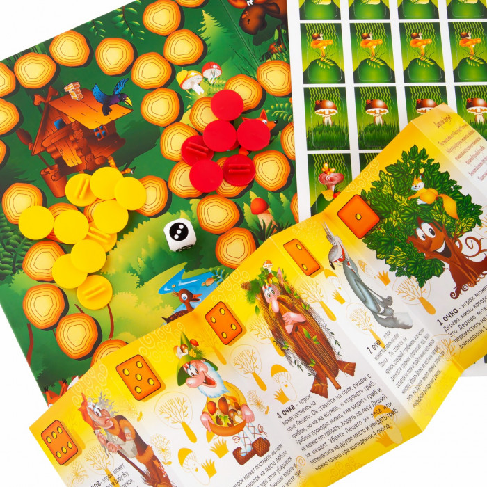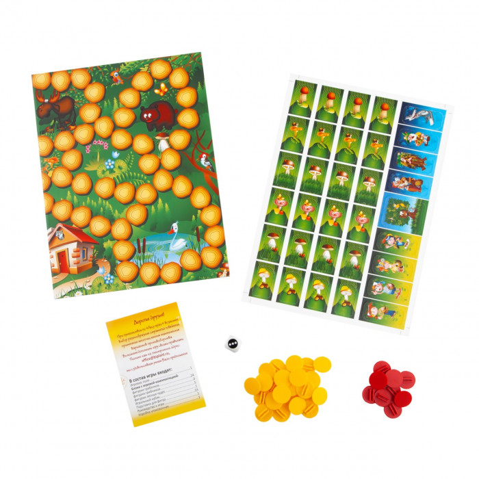 Лесные приключения для самых маленьких.Настольная игра- бродилка с быстро меняющимися сценариями игры. Цель игры: собрать как -можно больше грибочков и вернуться домой. Игра развивает начальные навыки счета, вызывает много положительных эмоций и способствует общению между игроками.