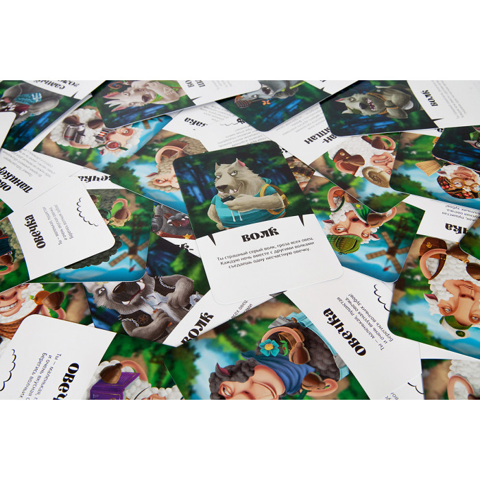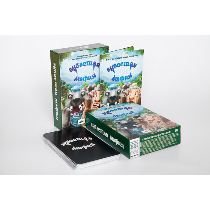 "Зубастая мафия" — это новая, еще более веселая версия знаменитой игры, разработанная специально для детей. Вместо мирных жителей и коварных мафиози за столом соберутся пушистые овечки и голодные волки. Милые рисунки и упрощенные роли позволяют принять участие в игре всем членам семьи. Как играть? Суть классической "Мафии" практически не изменилась. Игрокам раздаются карты с ролями: овцы или волка. Миролюбивым овечкам необходимо вычислить закравшихся в стадо волков. Днем участники игры высказывают свои подозрения и пытаются угадать злодея. Ночью засыпают все, кроме коварных волков в овечье шкуре, которым предстоит слопать одну из своих пушистых жертв. Среди персонажей есть аналогичные классической "Мафии", например, овечка-бабуля может спасти любую овечку от волков, а овечка-подозревака, как и комиссар, может поинетересоваться у ведущего про любого участника, хороший он или нет. Однако есть и новые забавные персонажи: овечка-штирлиц втирается в доверие к волкам и просыпается вместе с ними, но не может указать на них днем, волка-ниндзя не сможет вычислить даже овечка-подозревака. Помимо них существуют еще несколько крайне любопытных персонажей, делающих игру еще смешнее. На карточках помимо красивых иллюстраций описаны все возможности персонажей, а в правилах подробно изложены все нюансы, так что играть будет легко даже новичкам. В наборе: 20 карт овечек; 20 карт волков; правила игры; 2 памятки.