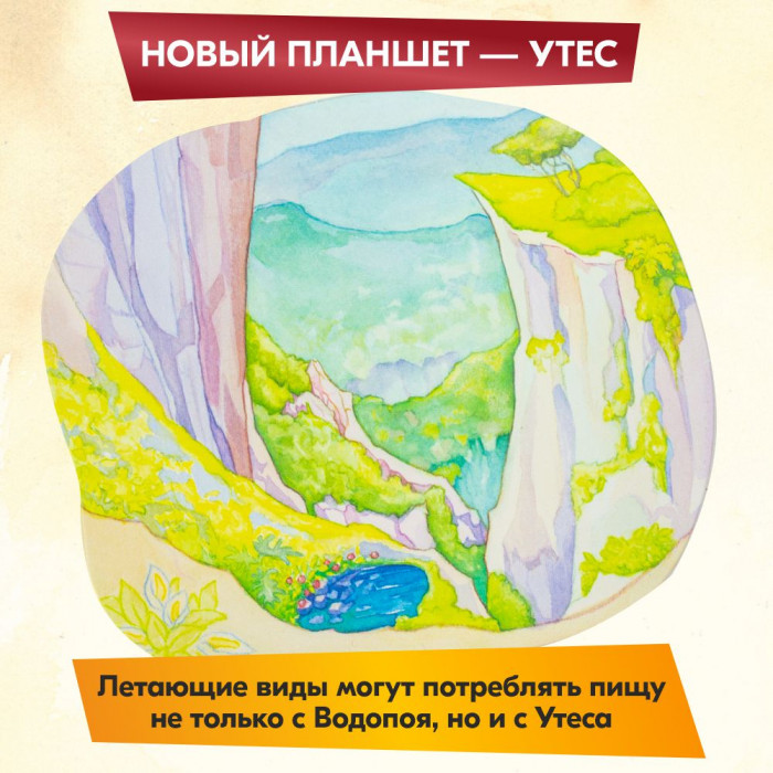 Утес — это источник пищи, как и Водопой. Еда на Утесе доступна только летающим видам. Иллюстрации для игры вновь выполнены талантливой художницей Катрин Гамильтон. Животные потрясающе красочны и кажутся живыми!