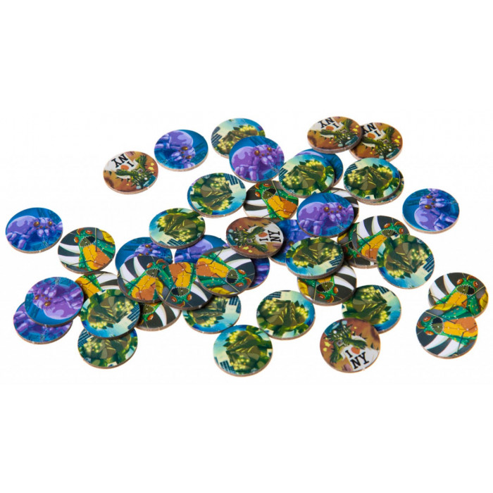 46 жетонов (13 паутин, 13 проклятий, 5 сувениров и 15 панцирей)