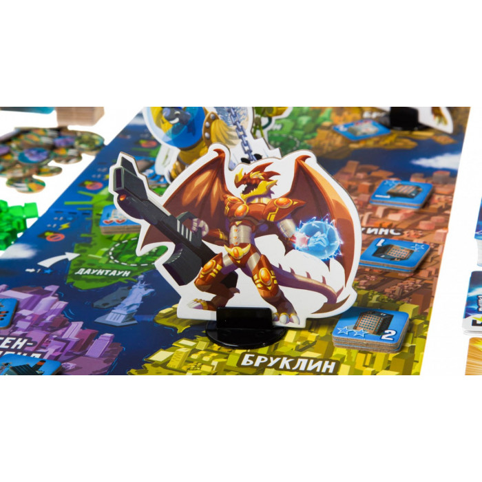 Гигантские монстры шагают по планете, разрушая все на своем пути. Повелитель Нью-Йорка — огненный и эпичный сиквел знаменитого Повелителя Токио. Станьте одним из монстров и уничтожьте Нью-Йорк. Вам предстоит в очередной раз проверить свою удачу и повергнуть всех своих врагов. Сочные иллюстрации, обаятельные чудовища, азартный игровой процесс и активное взаимодействие между участниками. Вы первым захватили Нью-Йорк? Творите беспорядки, наводите ужас на жителей, показывая, кто тут главный. Но если вас опередили, а другой монстр захватил мегаполис — сделайте все, чтобы свергнуть новоиспеченного повелителя Нью-Йорка. Готовы сражаться в масштабной битве гигантов? Выбирайте себе альтер-эго и вперед — крушить здания и кости врагов.