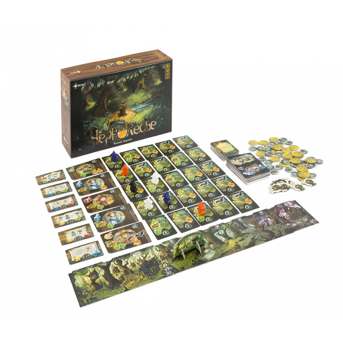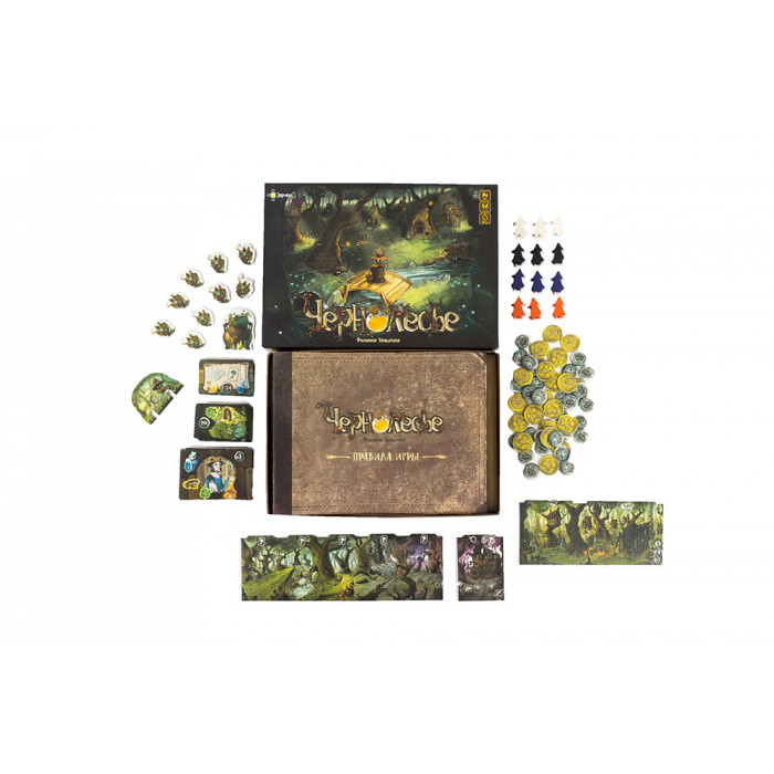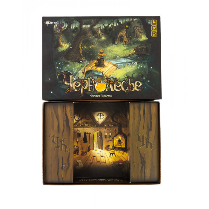 "Чернолесье" - волшебная настольная игра с атмосферными иллюстрациями. Игрокам предстоит искать в лесу ингредиенты, варить из них зелья, получая за это очки репутации. Самая уважаемая ведьма получит приглашение в Колдовской совет!