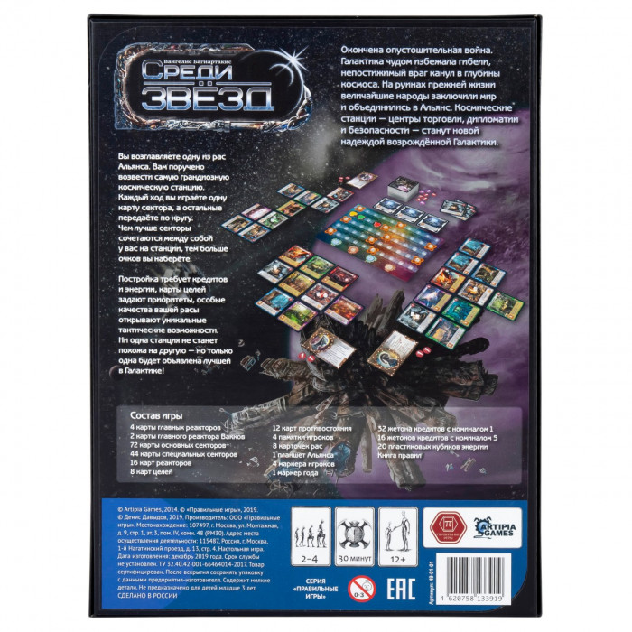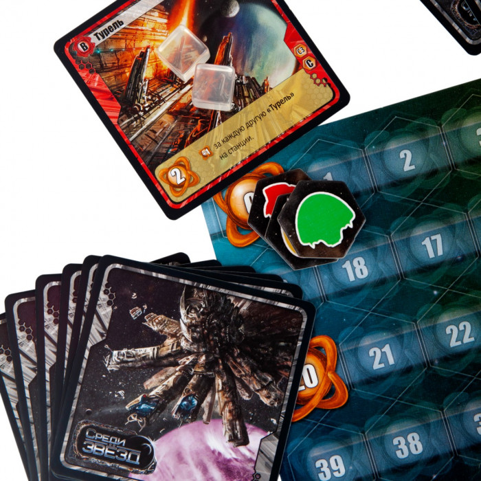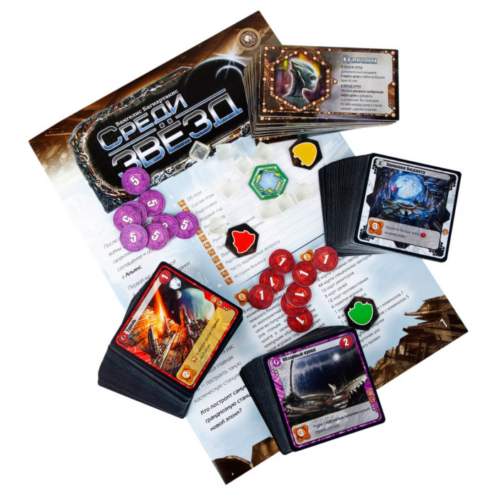 Настольная игра "Среди Звезд" — это карточная стратегия с механикой драфта. Оригинал: Among the Stars от Artipia Games.