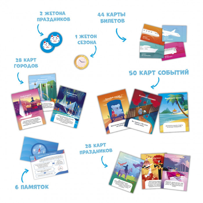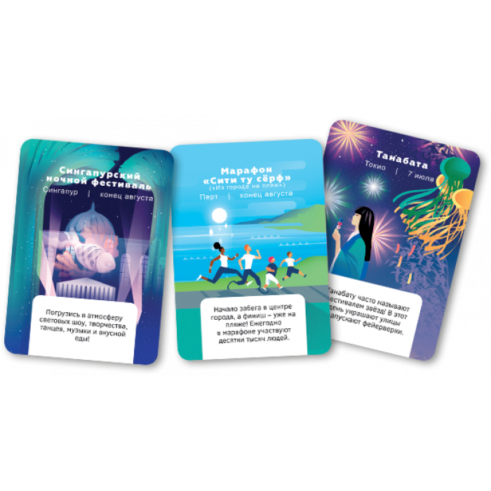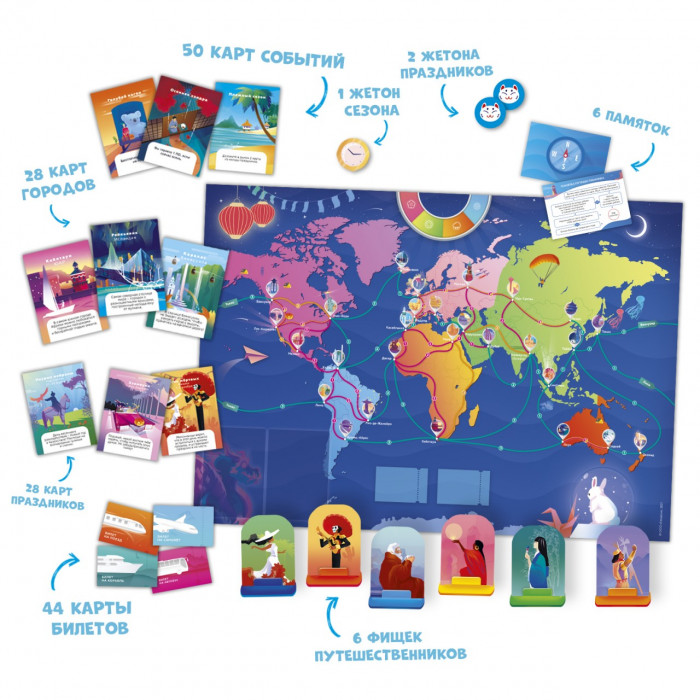 Вам предстоит объездить весь мир и сделать свое приключение незабываемым и запоминающимся. Успеете попасть на праздник - увеличите шансы на победу. Используете меняющиеся игровые обстоятельства себе на пользу - заработаете победные очки. Скучать не придется!