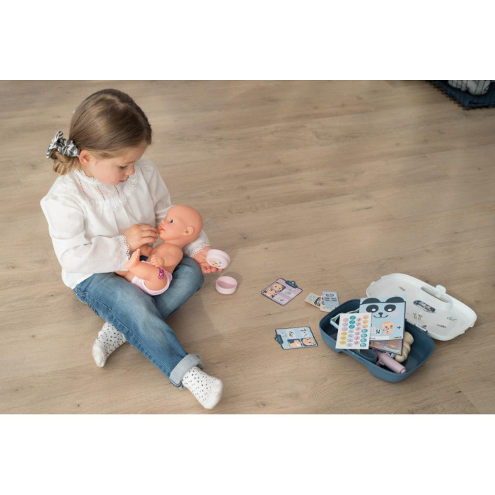 Детский набор доктора в чемоданчике позволяет детям играть в педиатра, осматривать и лечить свою куколку-младенца.