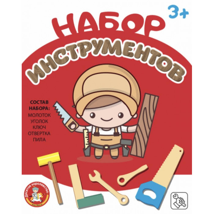 В комплект набора входит ящик с пятью основными инструментами, при помощи которых ребенок выполнит любую работу по игрушечному дому и почувствует себя взрослым, как папа. Юный мастер узнает, как выглядят и как называются инструменты, изучит их назначение и опробует их в действии.