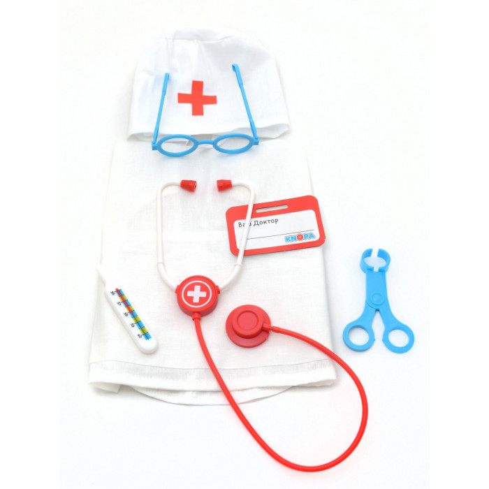 Доктор - это первый специалист, с которым сталкивается малыш в познании большого мира профессий. Детский набор "Доктор" собрал все необходимые атрибуты этой профессии включая шапочку и халат.