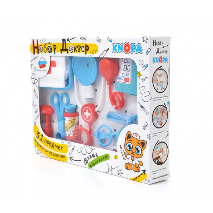 Примеряя на себя роль доктора, дети осознают важность заботы о здоровье. Набор поможет снять уровень стресса при посещении врача и выучить названия многих специальных предметов, которых в наборе 31.
