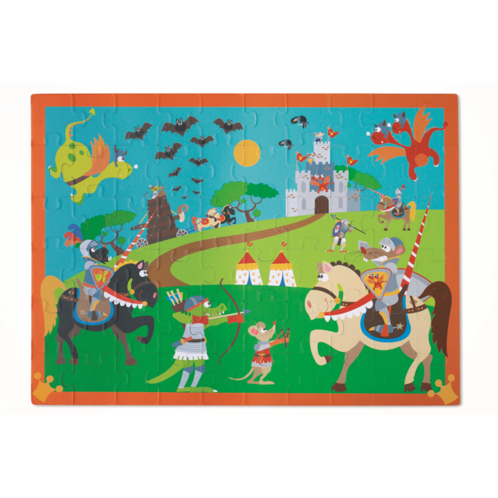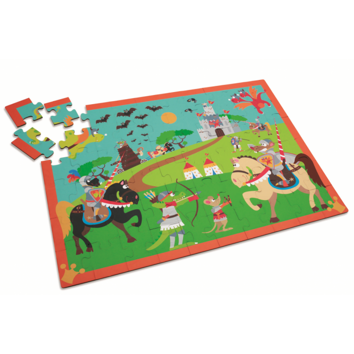 Красочный паззл с крупными частями из супертвердого картона. Собираем рыцарский турнир по кусочкам! Поместите детали пазла в нужное место и наблюдайте, как забавная картина оживает!