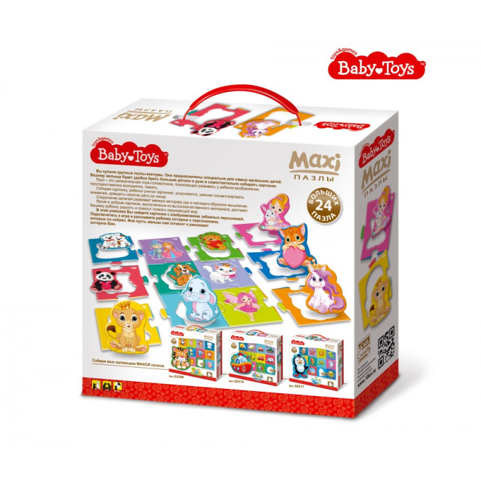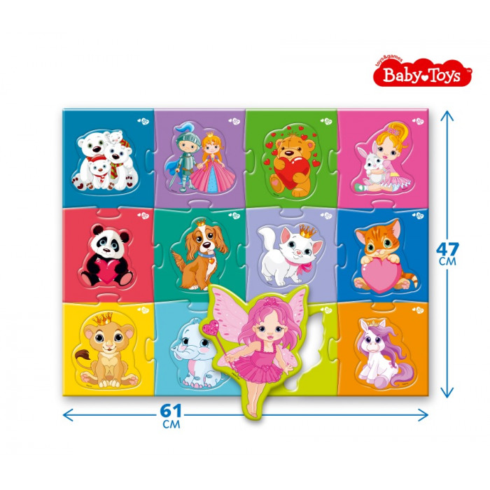 В комплекте 24 больших картонных пазла со вставками в виде разных милых, симпатичных и забавных созданий.