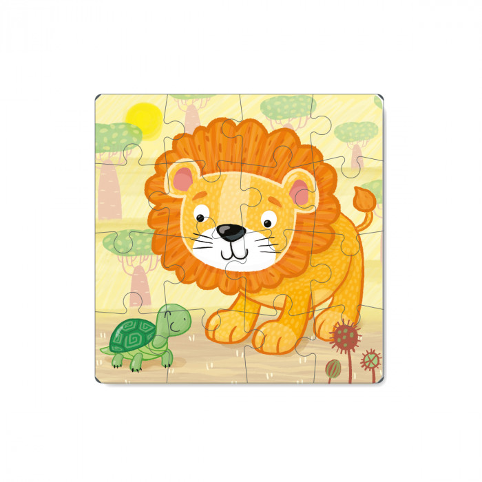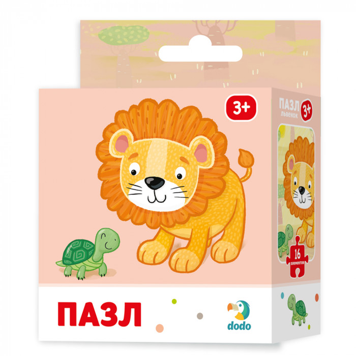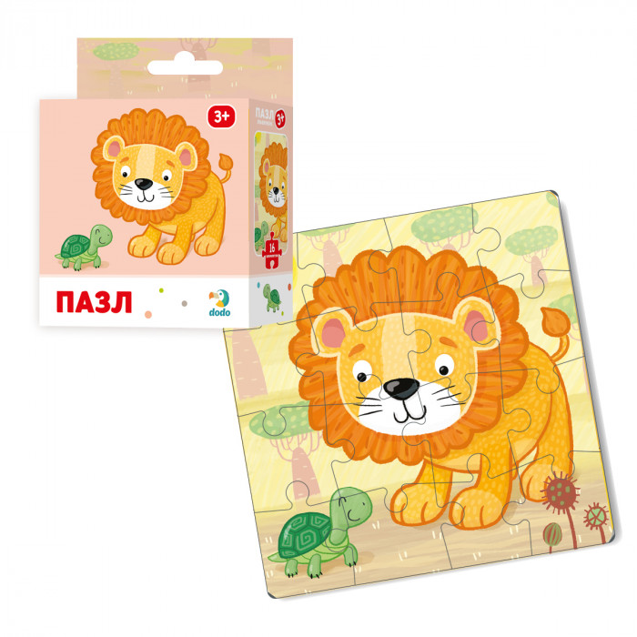 Пазл "Львенок" представляет собой изображение добродушного львенка. Состоит из 16 элементов. В процессе выполнения задания получается большое изображение 22×22 см.