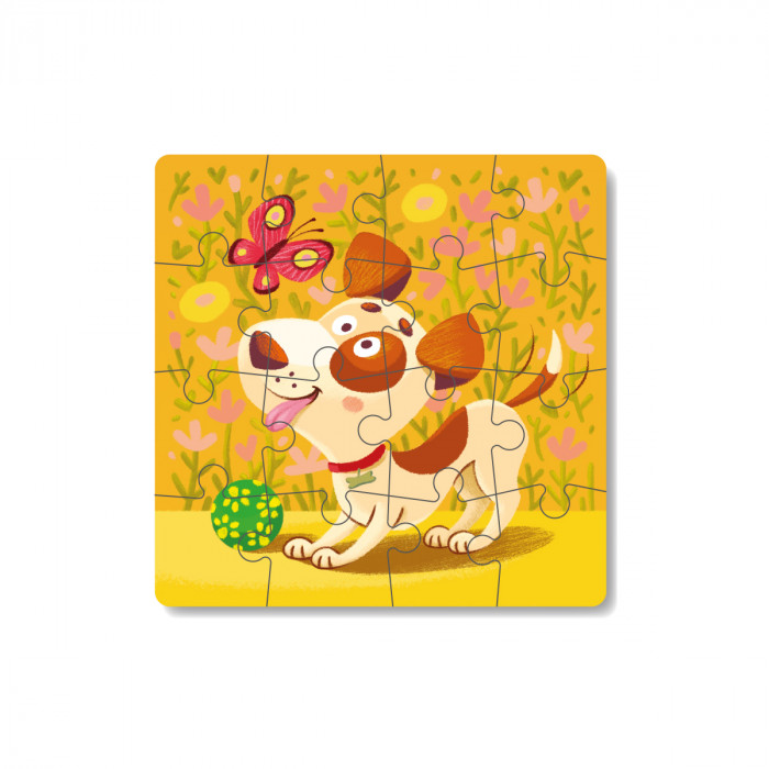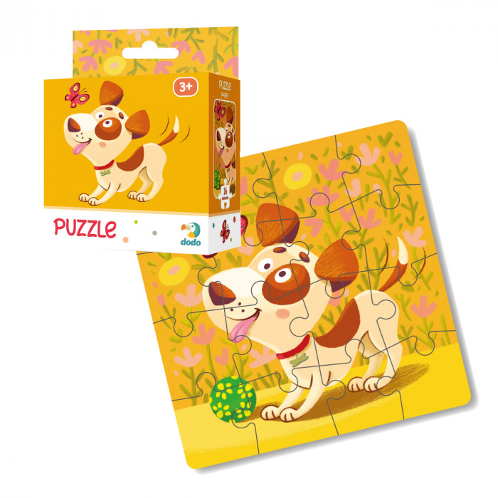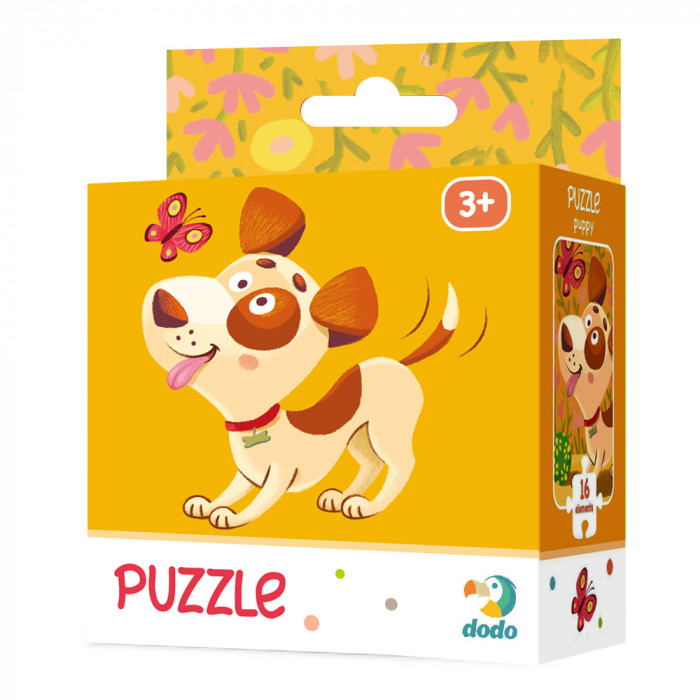 Пазл "Щенок" состоит из 16 элементов. В собранном виде пазл представляет собой очень яркую и живую картинку. На ней, прыгает и резвится милый, забавный щенок. Он приветливо виляет хвостиком, радуясь летающей бабочке.