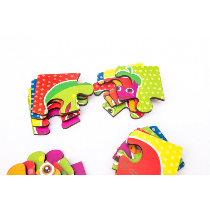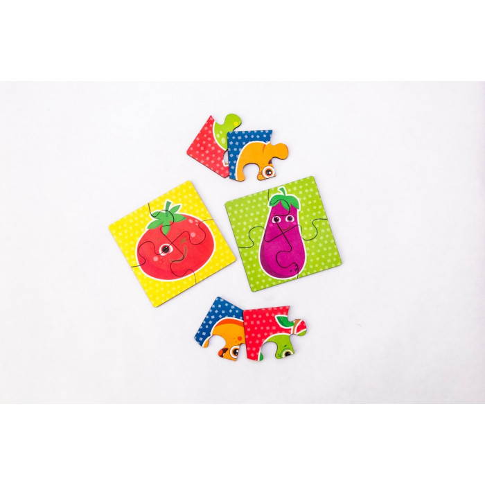 В комплекте ребенок найдет сразу 4 варианта пазлов, что, несомненно, разнообразит его деятельность и поможет в развитии мелкой моторики, мышления, воображения, тактильного и зрительного восприятия.