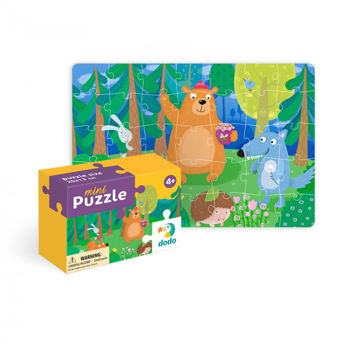 Пазл-мини "Тедди и его друзья" представляет собой изображение веселого медведя и его лесных друзей.
