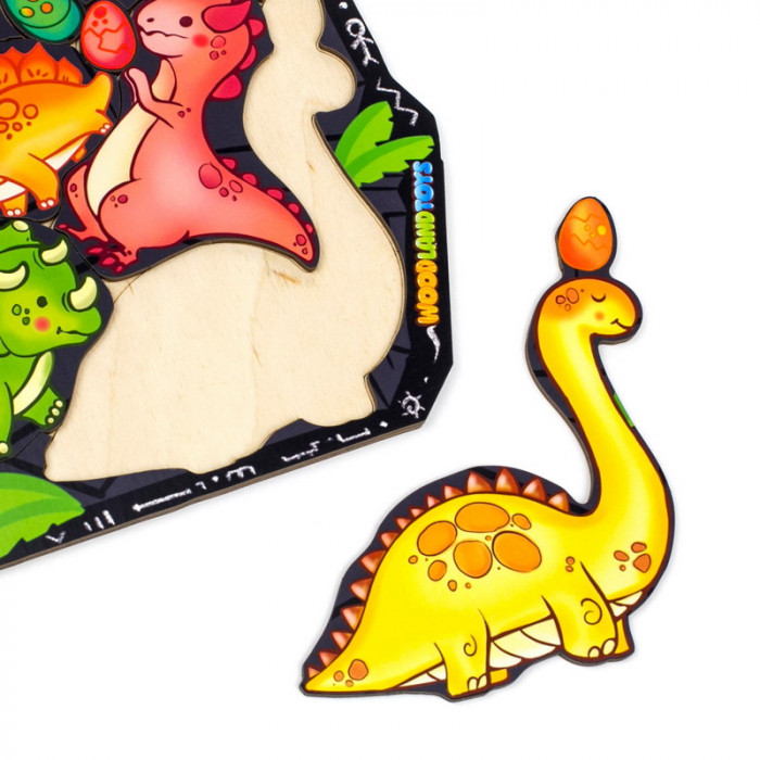 Пазл-головоломка "Динозавры" — развивающая игрушка для любознательных непосед, которая учит воспринимать связь между целой картинкой и ее частями.