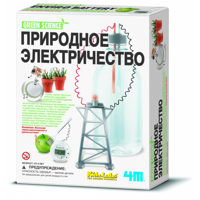 "Природное электричество" - это не только научные эксперименты, но и проект по защите экологии. Набор, входящий в серию Green Science от 4M, демонстрирует, как можно получать и использовать "чистые" источники энергии. Он прививает любовь к нашей планете и учит заботиться об окружающей среде во благо безопасного будущего.