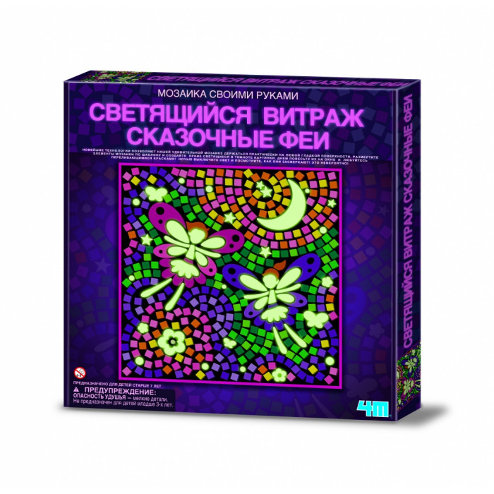 Благодаря инновационному набору от 4М ваша маленькая рукодельница без труда освоит искусство мозаики и витража. Разместив элементы по шаблону, она создаст изумительную картину, переливающуюся в лучах солнца и святящуюся в темноте.