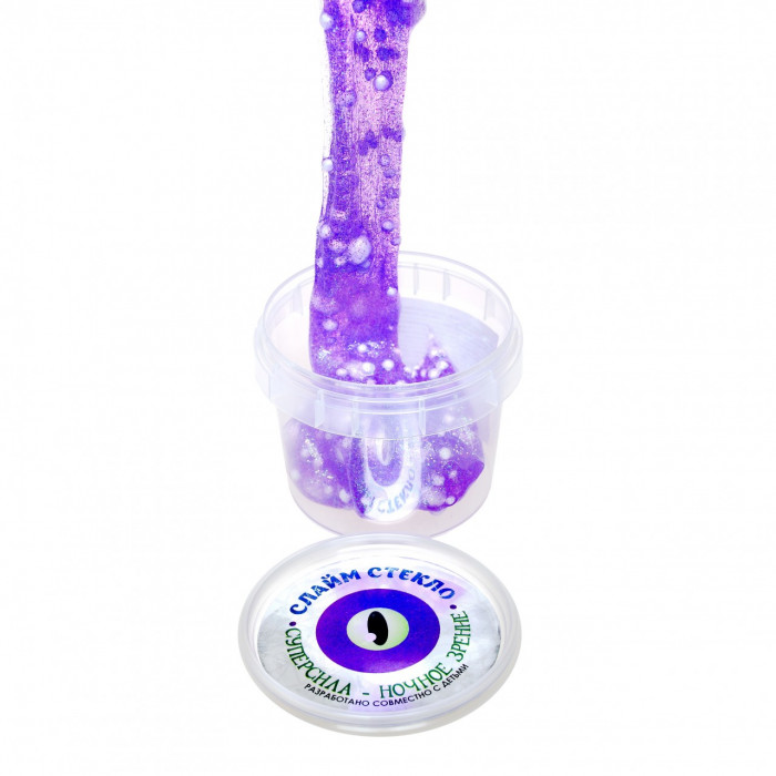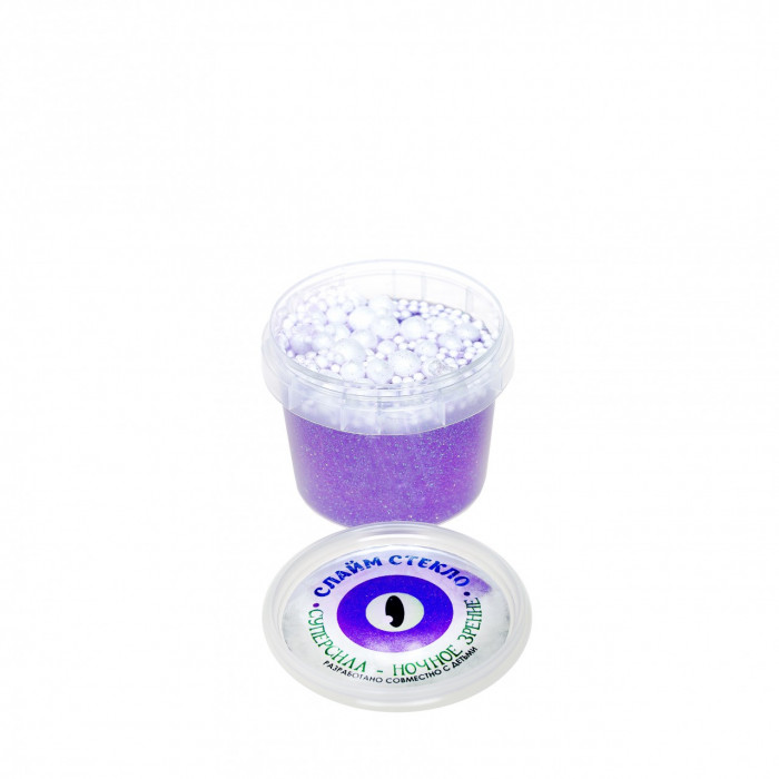 Слайм СТЕКЛО 00-00001263 "Ночное зрение" с фиолетовыми блестками с шариками, 90 гр