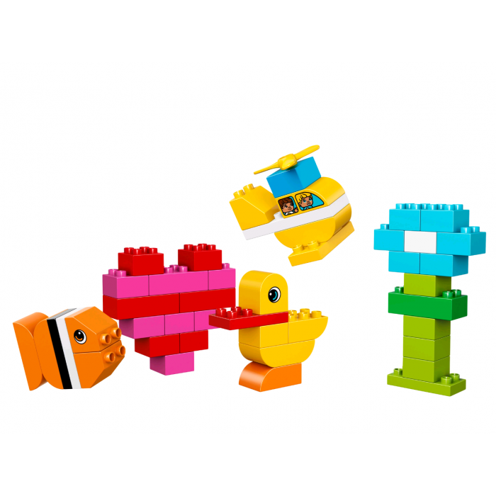Пробудите воображение малыша с помощью потрясающего ассортимента кубиков LEGO®DUPLO®, который может стать источником бесконечного веселья! Используя эти яркие, красочные кубики, некоторые из которых украшены с двух сторон, пропеллер и карточки по сборке как источник вдохновения дети могут построить практически все, что только можно представить: самолёт, лодку и маленький домик! Крупные кубики LEGO DUPLO специально сконструированы так, чтобы они были безопасны и удобны для маленьких ручек.