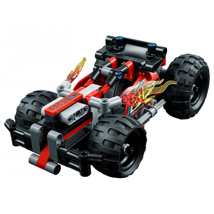 Заводи мощный автомобиль! LEGO® Technic, выполненный в потрясающей красно-чёрно-серой цветовой гамме с крутыми гоночными наклейками и оснащённый суперпрочным передним бампером, большим задним спойлером и массивными шинами. Активируй инерционный двигатель, чтобы испытать потрясающую мощь и скорость этого автомобиля и увидеть, как двигатель выскакивает из корпуса во время столкновения... АТАКА!